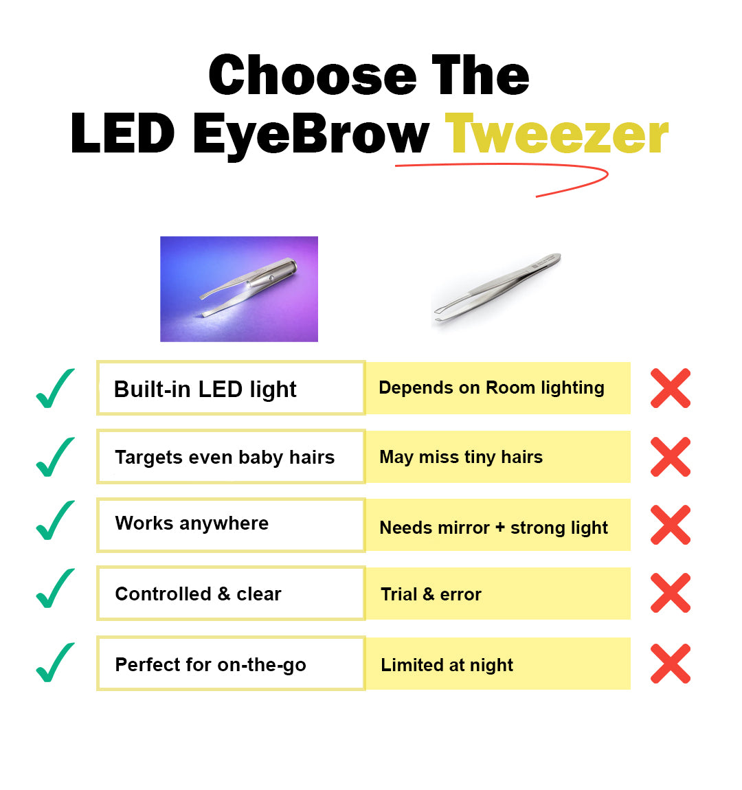 The Eyebrow Tweezer with LED Light is designed to help you see even the finest, shortest hairs — so you never miss a spot again...